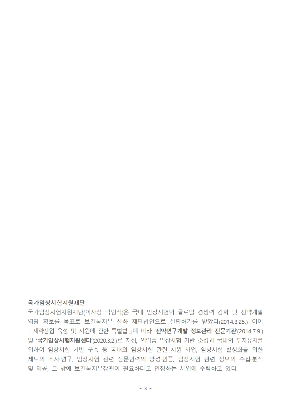 한국 임상시험 산업 정보 통계집 한국임상시험백서 KoNECT Brief 기타자료