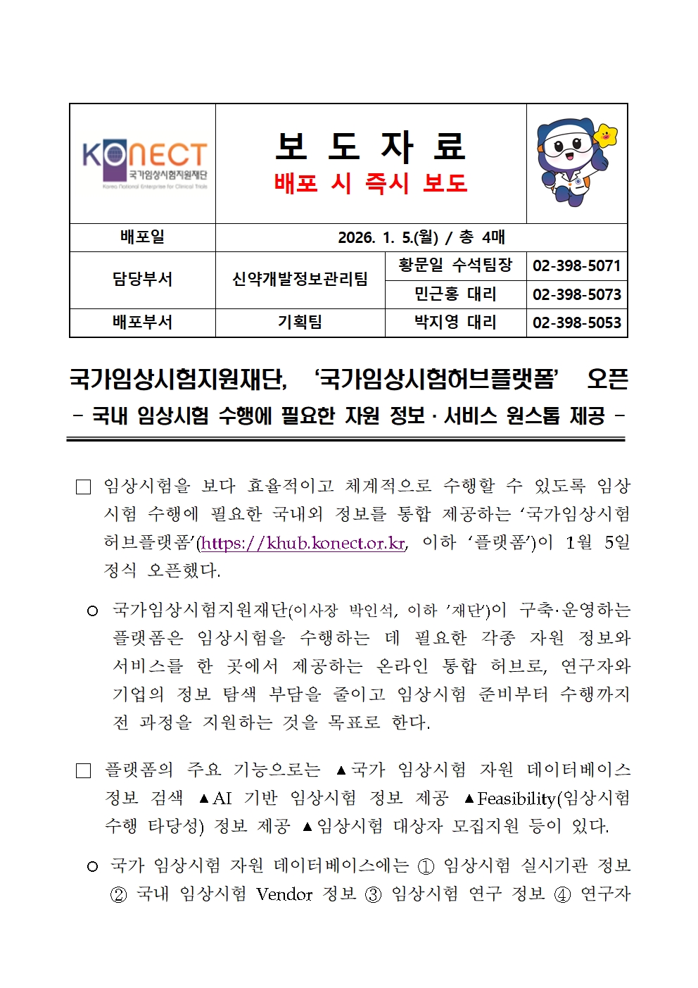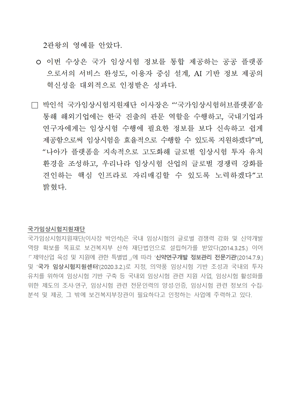 [보도자료] 국가임상시험지원재단, '국가임상시험허브플랫폼' 오픈.hwp