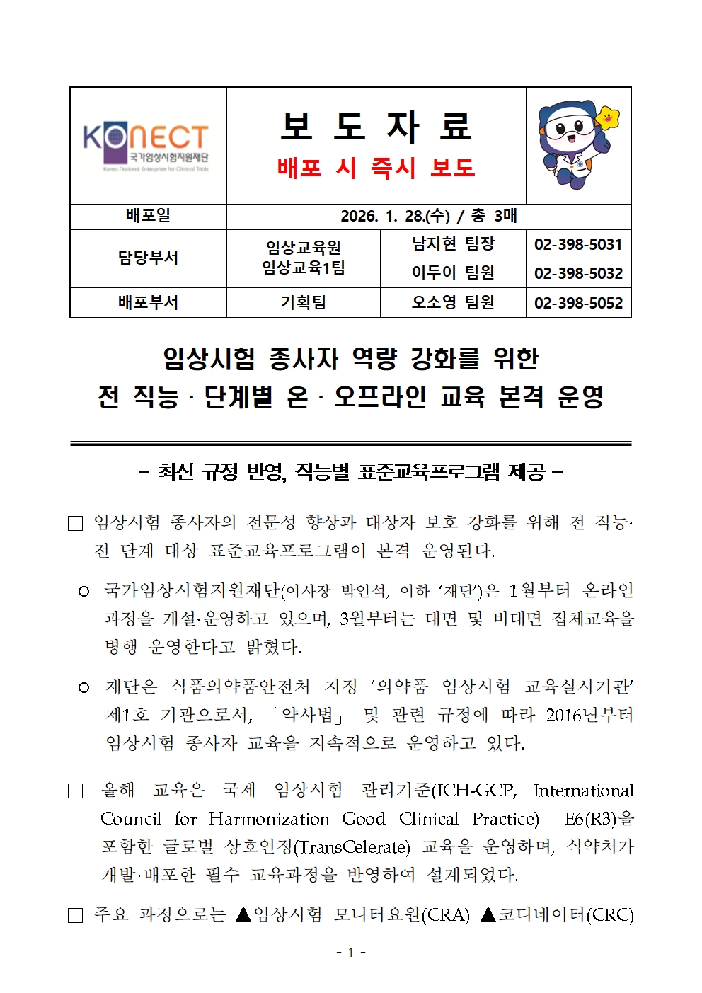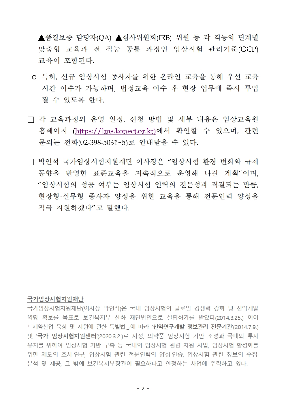 [보도자료] 국가임상시험지원재단, 임상시험 종사자 역량 강화를 위한 전 직능·단계별 온·오프라인 교육 본격 운영.hwp