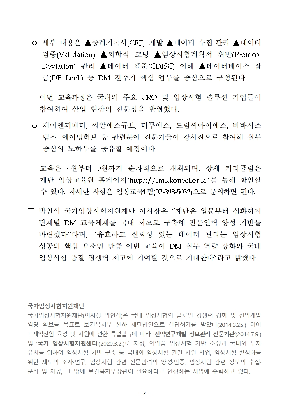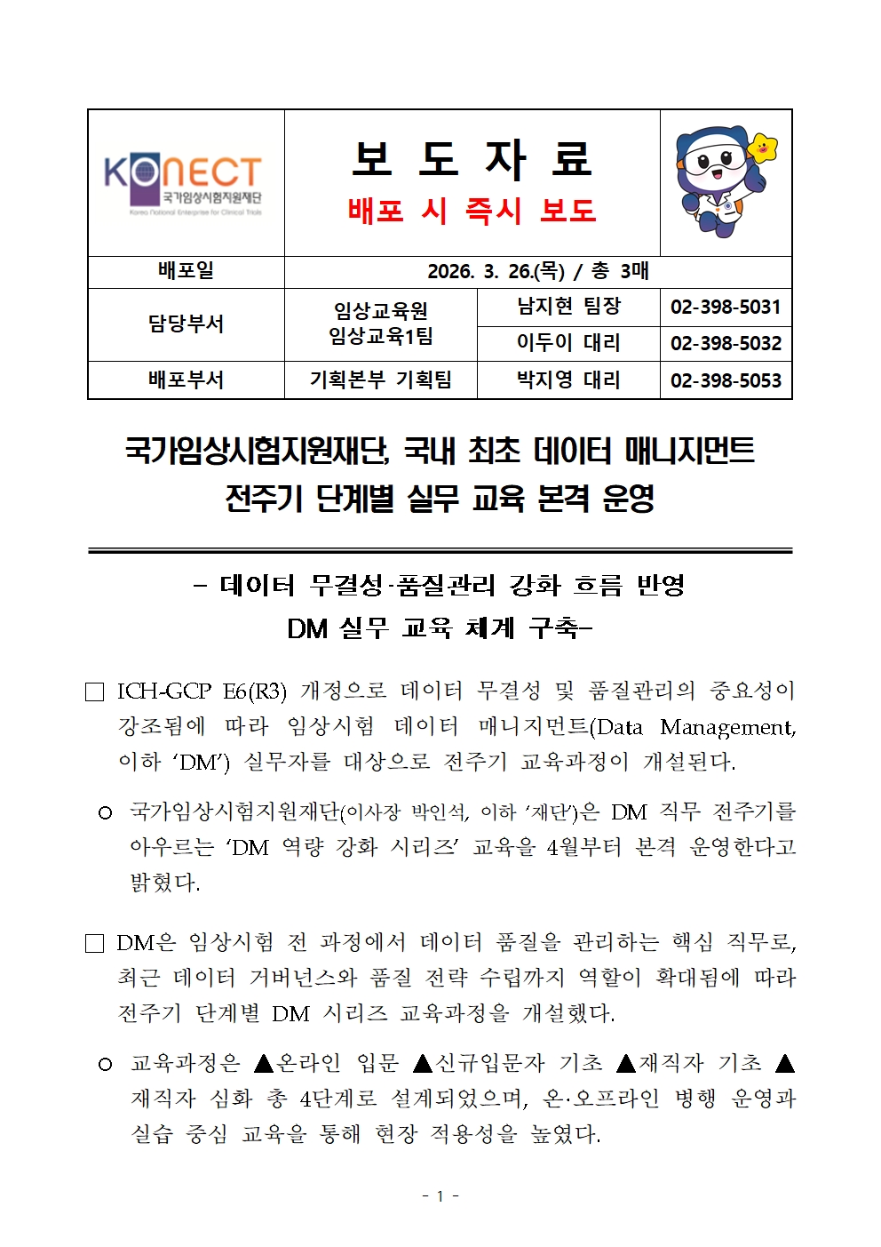 260326_국가임상시험지원재단, 데이터 매니지먼트 전주기 단계별 실무 교육 본격 운영_최종.hwp